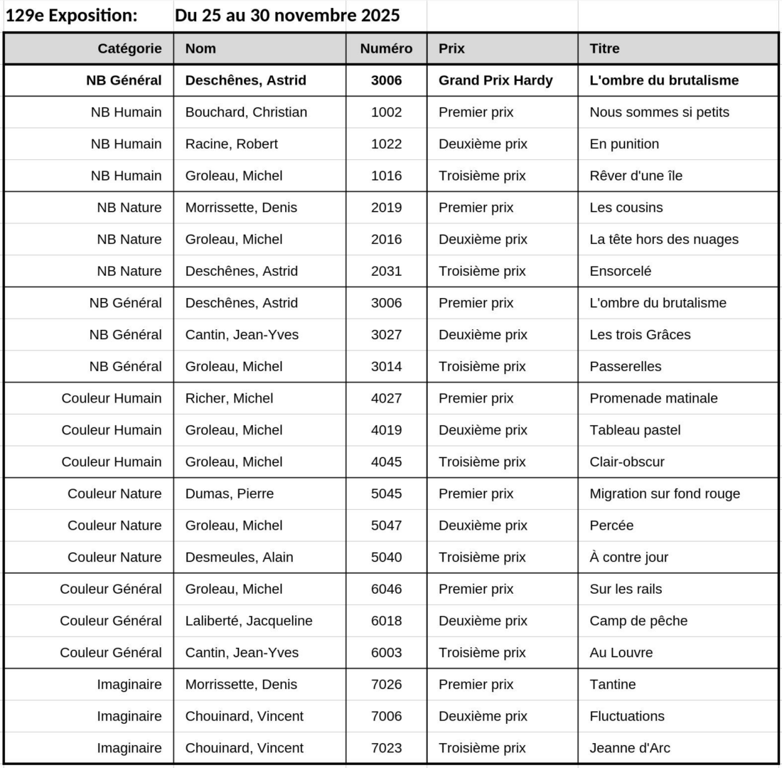 | Exposition #129 à Laurier – (Endroit à déterminer, date à confirmer) | 2025-11-25 au 2025-11-30 |